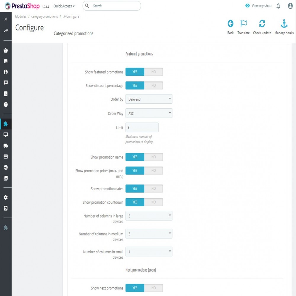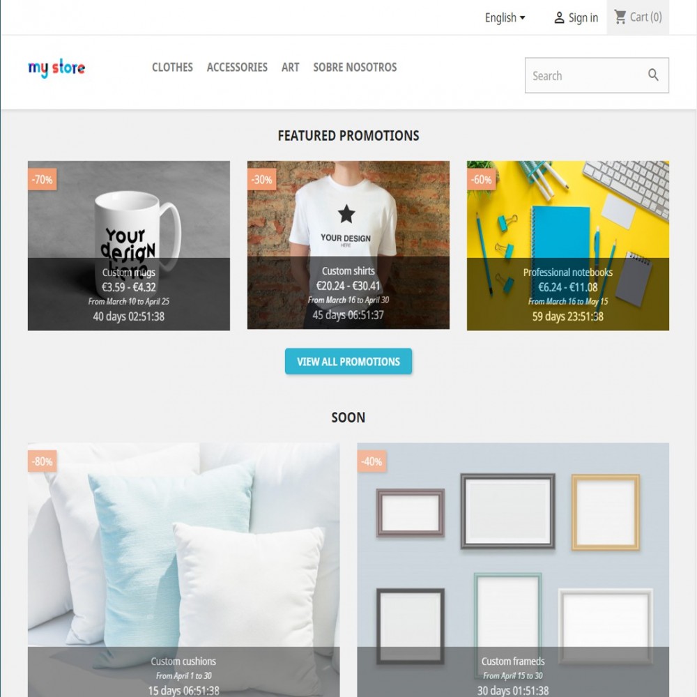 Creates and shows to your customers attractive promotions associated with a category on the home page. Featured promotions and next promotions.