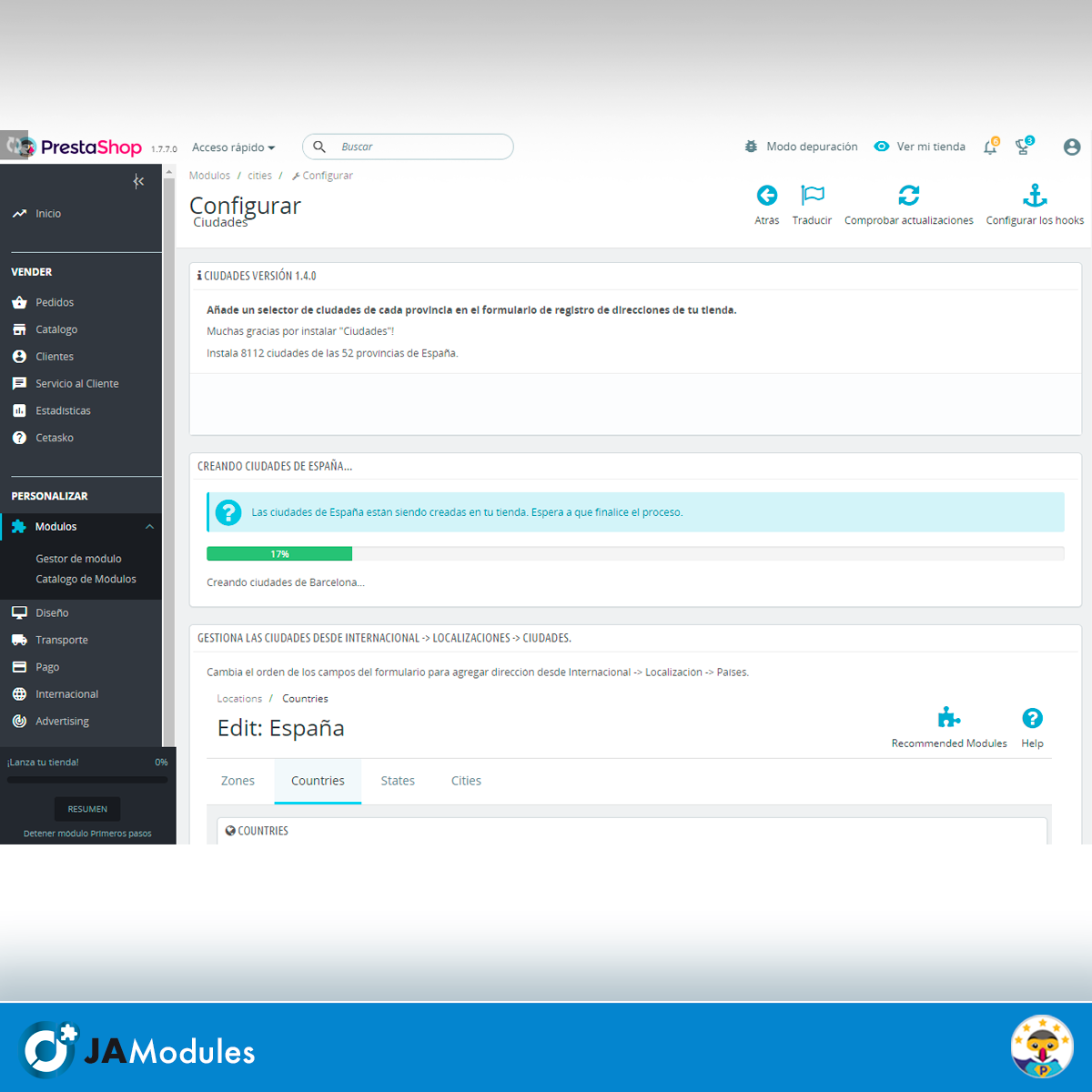 Actualización importante del módulo de Ciudades. Hemos agregado un nivel de seguridad adicional. Ahora es compatible con el sistema de multi-tienda y la instalación se adapta a los nuevos identificadores de las provincias en PrestaShop 1.7.