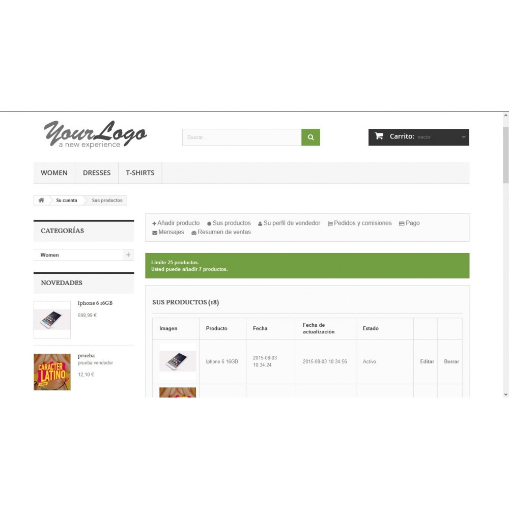 Dans le front office, la limite de chaque vendeur apparaît toujours visible et combien de produits manquent pour atteindre la limite. Si un vendeur atteignant cette limite, il ne serait pas possible d’ajouter d’autres produits.
